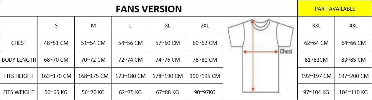 تيشيرتات اللاعبين تأتي بقصّة ضيّقة، لذا يُنصح باختيار مقاس أكبر بدرجة واحدة من المقاس المعتاد.